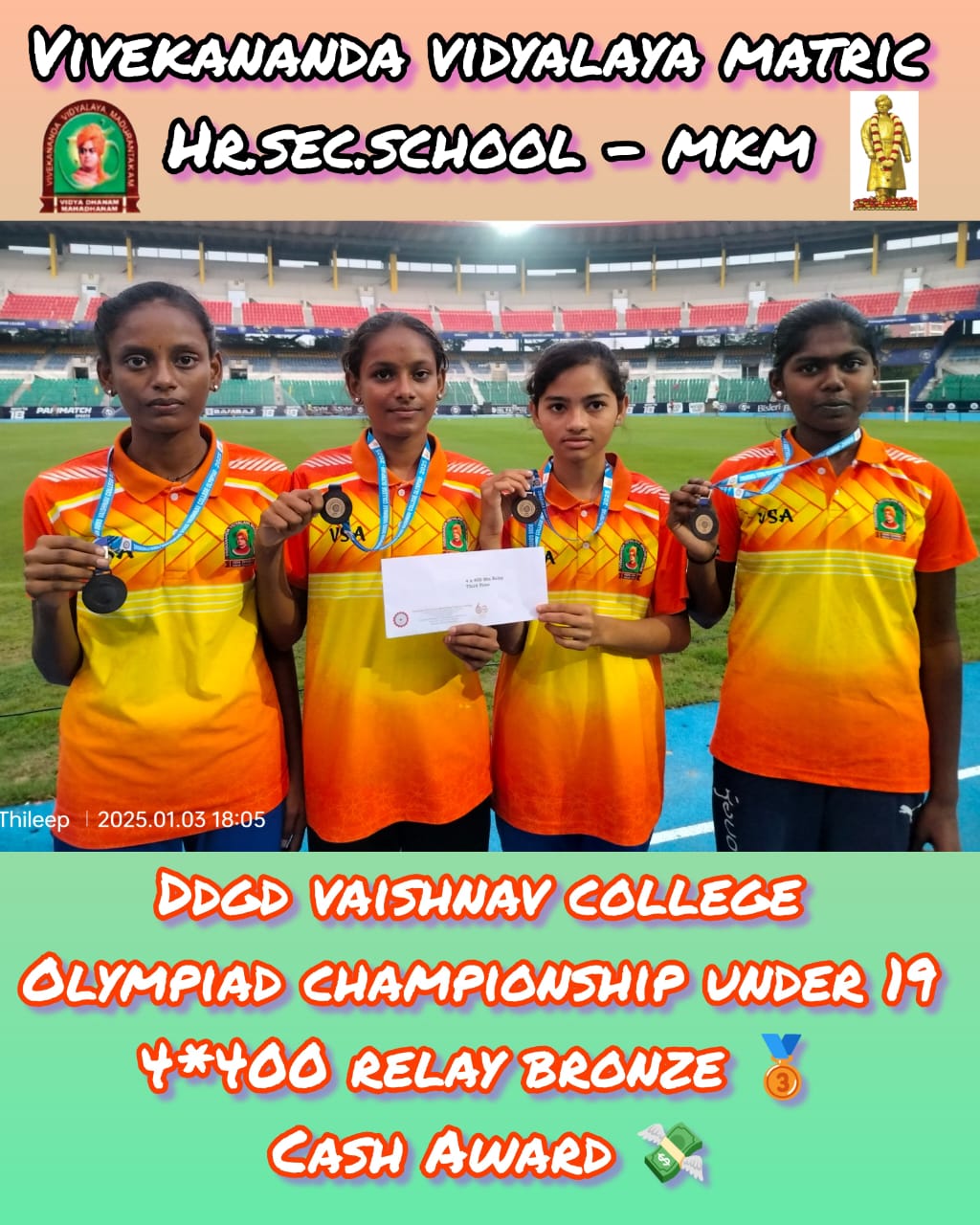 DDGD VAISHNAV COLLEGE 2025 OLYMPIAD CHAMPIONSHIP UNDER 19 4*400 RELAY SILVER & BRONZE WINNERS