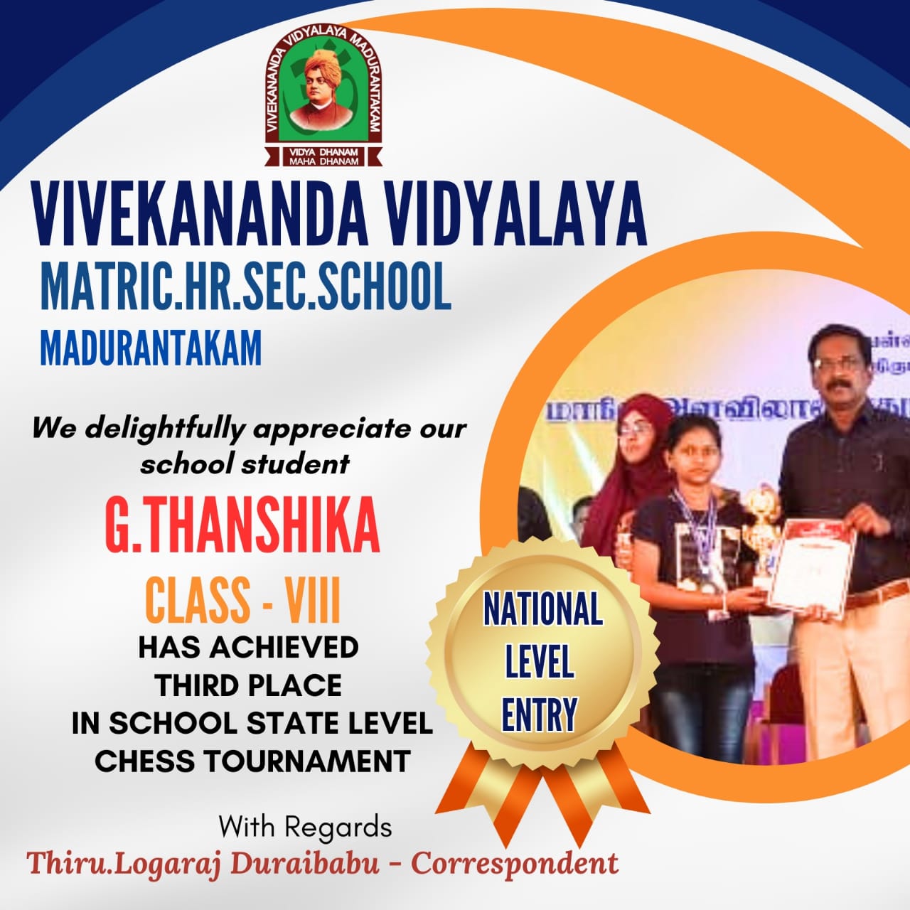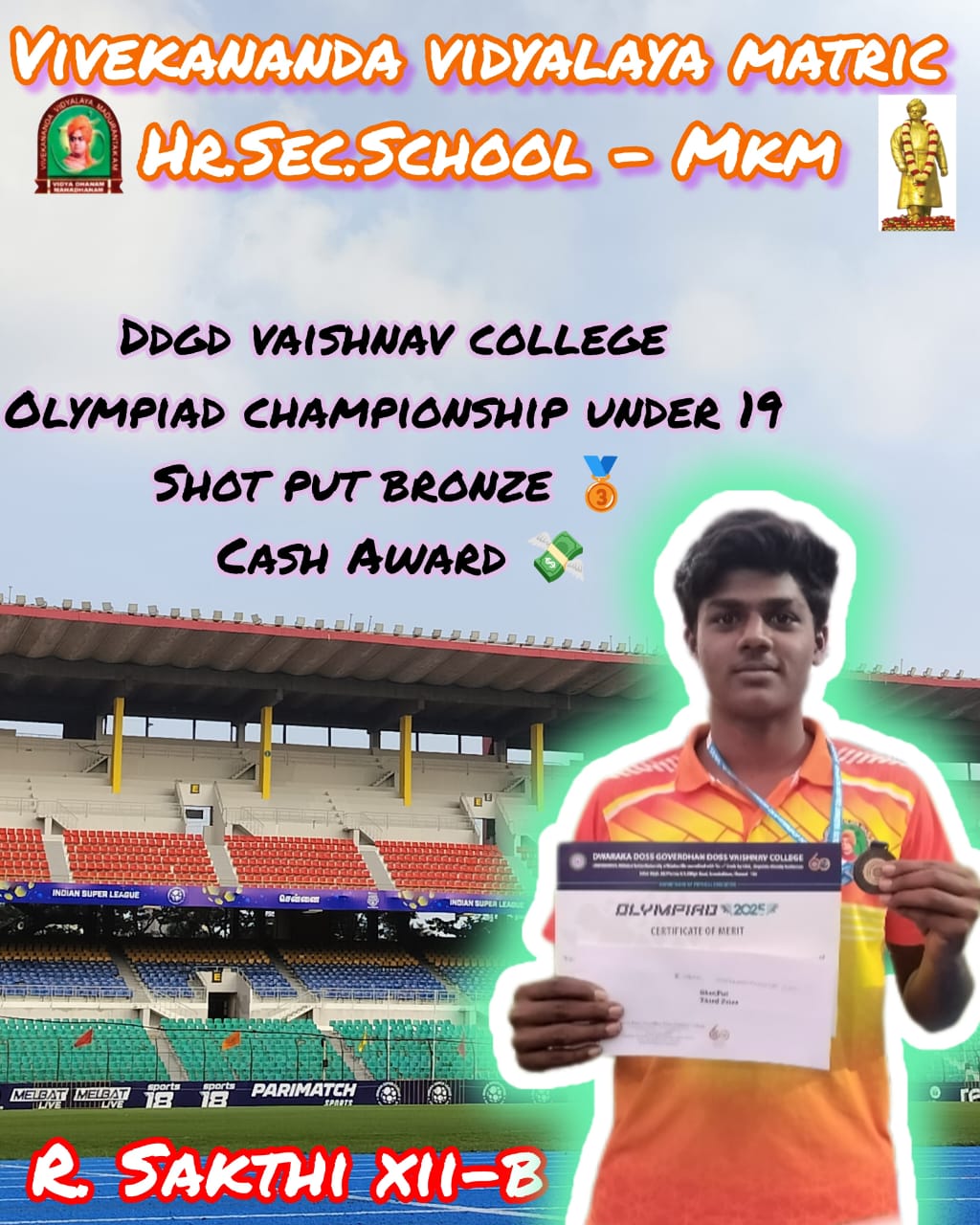 DDGD VAISHNAV COLLEGE OLYMPIAD CHAMPIONSHIP UNDER 19 SHOT PUT BRONZE WINNER